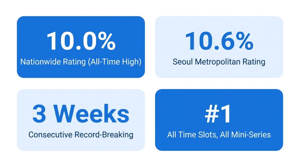 Ratings Trend: Ep1: 6.3% → Ep2: 8.7% → Ep3: 7.8% → Ep4: 9.1% → Ep5: 8.7% → Ep6: 10.0%